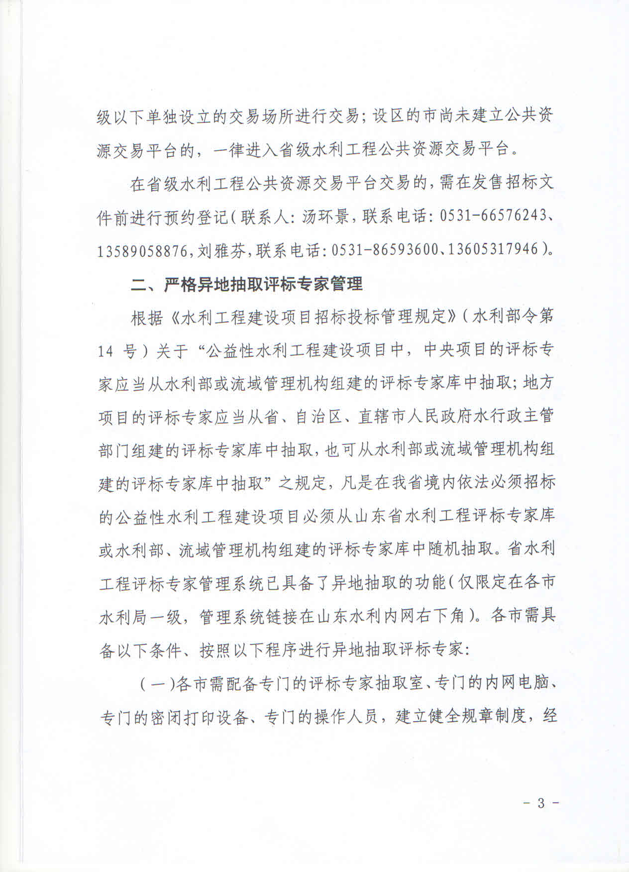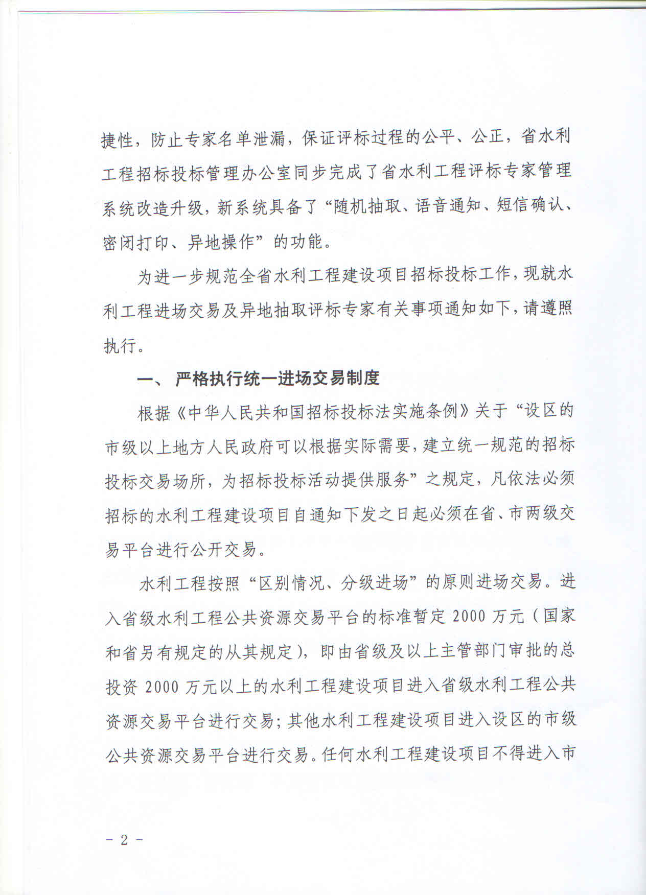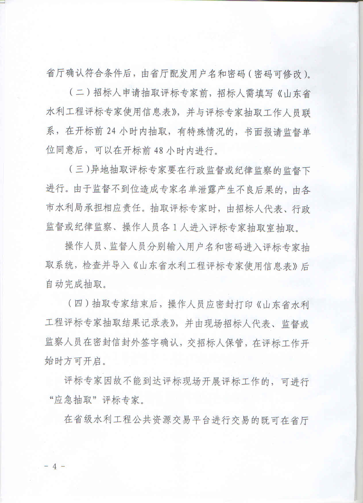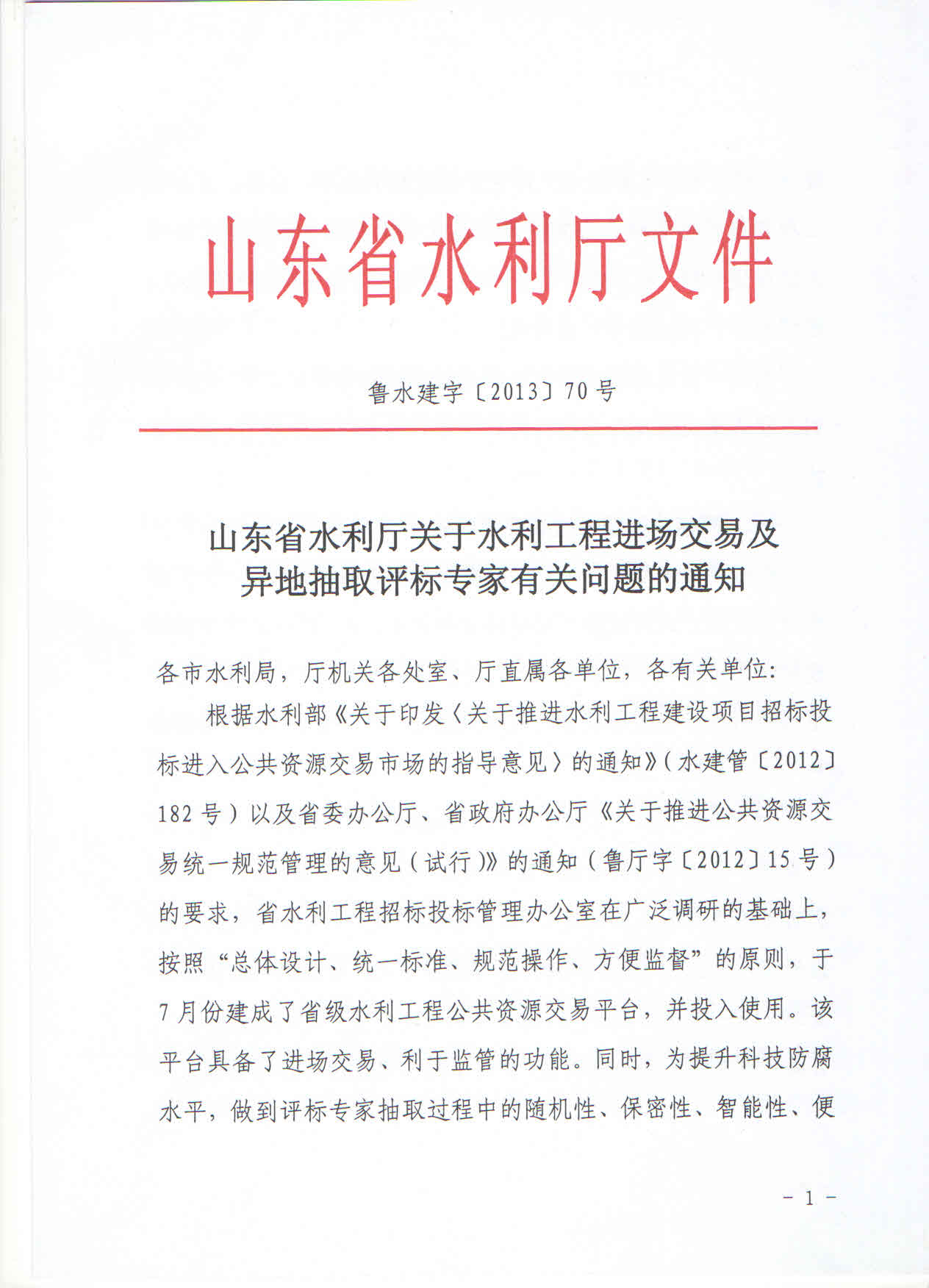 山東省水利廳關(guān)于水利工程進(jìn)場交易及異地抽取評標(biāo)專家有關(guān)問題的通知